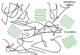 高分子的结晶现象发生的温度区间一般在 Tg(玻璃化转变温度) 至 Tm(熔融温度-结晶聚合物) 之间。温度过高会破坏分子的有序排列,温度低于玻璃化温度,分子链的运动会被冻结。但是,温度即使低于玻璃化温度Tg,二次结晶也会进行,只是时间尺度会很长,达到月或年的量级。这一过程会影响高分子的力学性质,使体积减小,因为链堆砌的更紧密。
